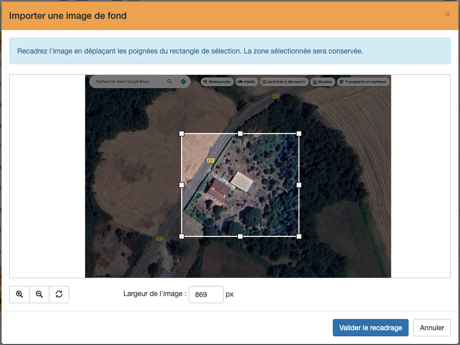- Utilisez les boutons situés sous l’image pour : Zoomer 🔍 sur l’image ou réinitialiser le cadrage si nécessaire.